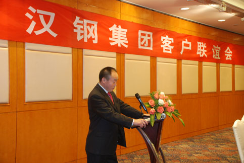 漢鋼集團總經理劉文濤向客人介紹了漢鋼今明兩年生產經營情況,并希望朋友們繼續支持漢鋼,再接再厲,共創雙贏。