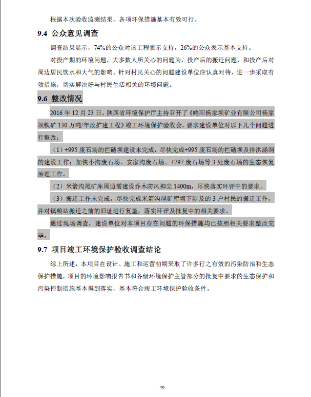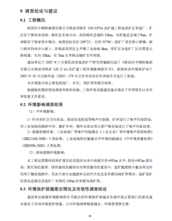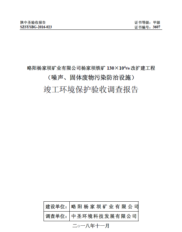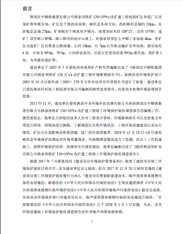 附件:略陽楊家壩礦業(yè)有限公司楊家壩鐵礦130×104t/a改擴(kuò)建工程(噪聲、固體廢物污染防治設(shè)施)竣工環(huán)境保護(hù)驗(yàn)收調(diào)查報(bào)告