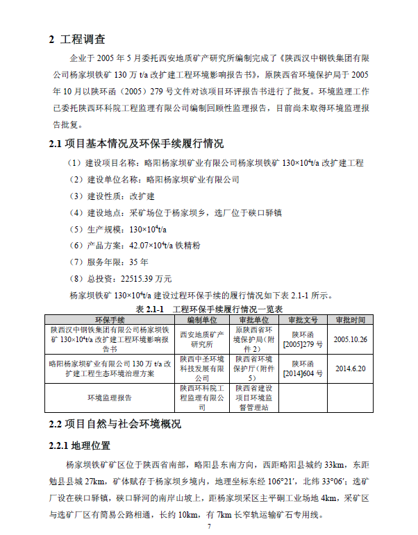 略陽楊家壩礦業(yè)有限公司楊家壩鐵礦130×104t/a改擴(kuò)建工程
